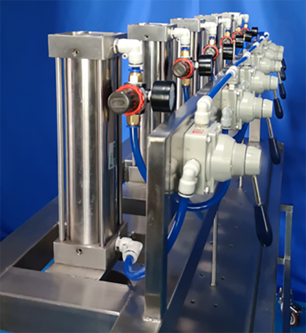 采用壓縮空氣提供動力,每個氣缸壓力都可獨立調(diào)整